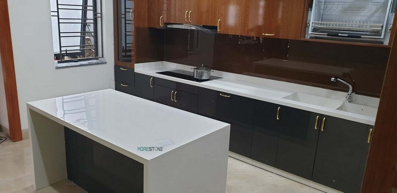 Khách hàng hiện nay đang ưa chuộng mặt bếp ốp đá nhân tạo vân mây làm lựa chọn của họ.