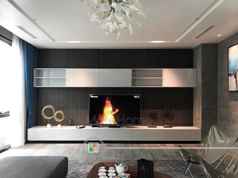 Morehome đã thực hiện thiết kế và thi công các công trình nội thất trọn gói tại chung cư An Bình city. Hình ảnh thi công nội thất phòng khách này được thực hiện bằng gỗ công nghiệp với kệ tivi hiện đại và vách gỗ ốp tường. Nếu quý khách cần thi công hoặc thiết kế nội thất cho chung cư An Bình city, hãy liên hệ Morehome để được tư vấn.